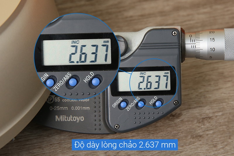 Độ dày 2.637 mm giữ nhiệt tốt cho thức ăn trong chảo ngay cả khi đã tắt bếp
