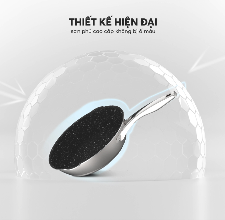 Bề mặt chảo chịu chà nhám tốt, bạn có thể sử dụng dụng cụ nấu bằng kim loại dễ dàng mà không lo chảo bị hỏng, trầy xước. Chảo được thiết kế với cấu trúc tỏa nhiệt đều giúp bảo toàn trọn vẹn dưỡng chất của thực phẩm.