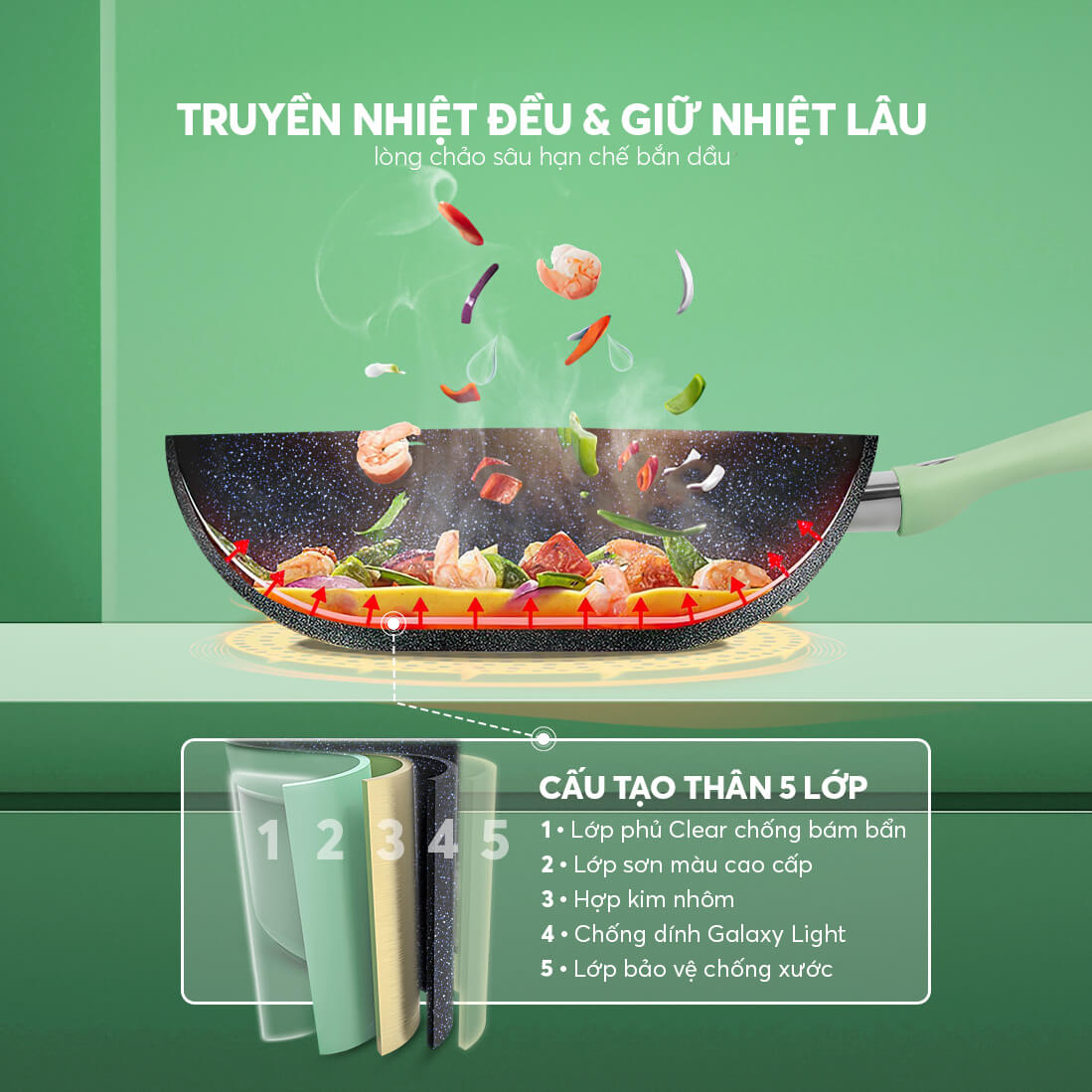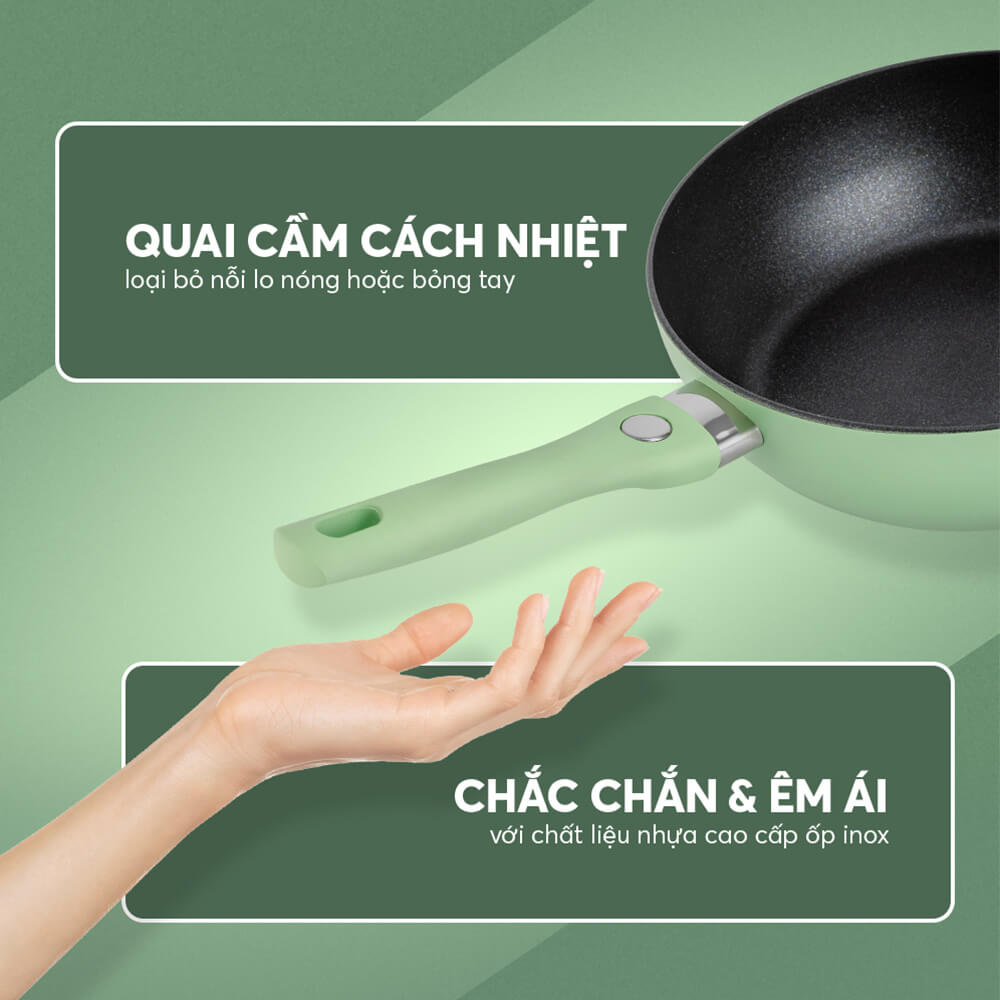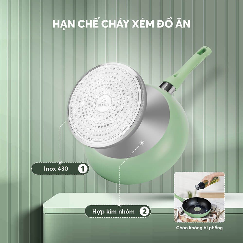 – Miệng chảo có độ dày lên đến 2.8mm, cứng vững an toàn, chịu va đạp tốt