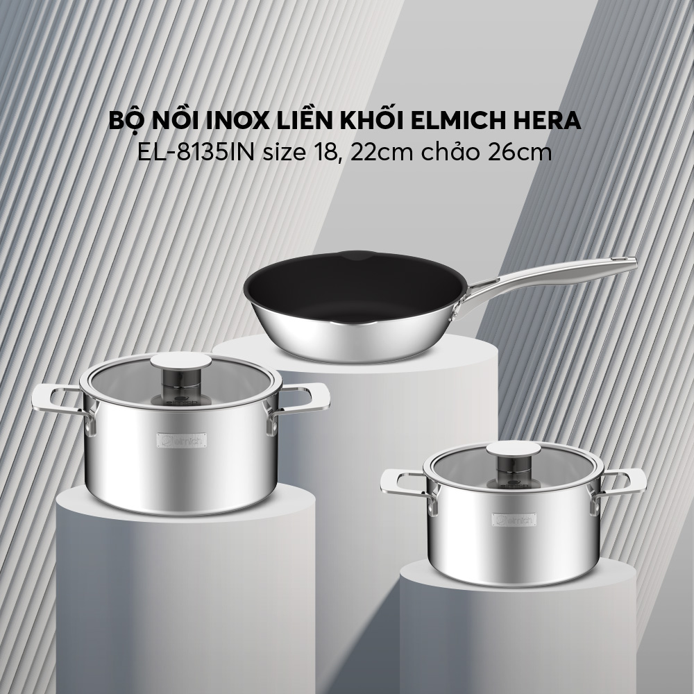 – Tính xếp gọn 3 size nồi cả vung vào nhau nhằm tiết kiệm không gian lưu trữ trong bếp, kệ, giá để đồ