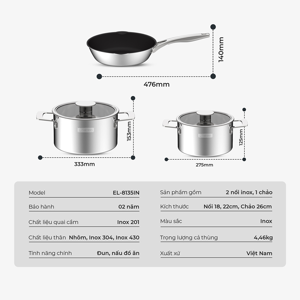 - Tay cầm, quai, bằng inox 201 sáng bóng, chắc chắn, an toàn.