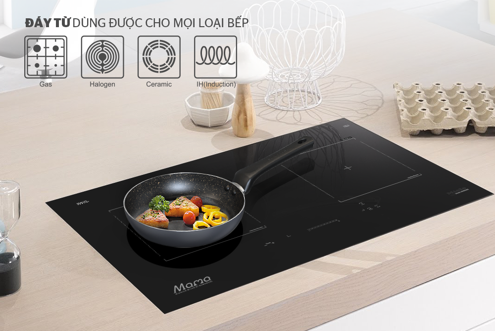 Chảo dùng được trên bếp gas, bếp hồng ngoại, không dùng trên bếp từ.