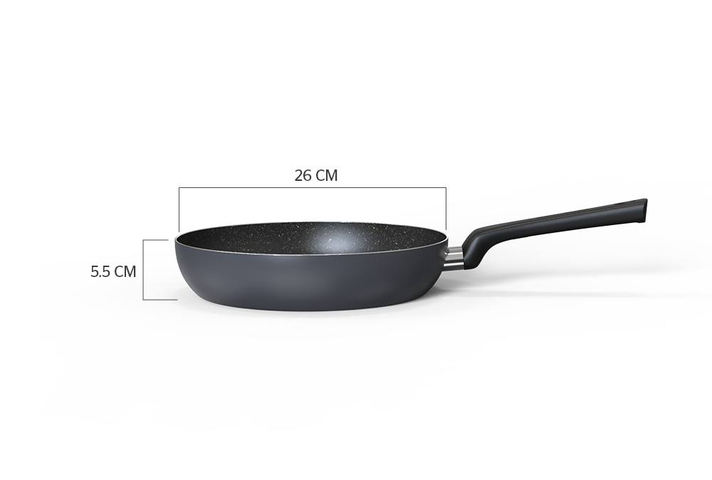 Sản phẩm sử dụng chống dính vân đá có độ bền bỉ tối ưu. Nhờ đó, bạn có thể giảm đi một lượng đáng kể dầu mỡ khi chiên xào mà không cần e ngại thực phẩm dính sát vào lòng chảo. Lớp chống dính dày dặn này cũng đảm bảo an toàn sức khỏe cho cả gia đình.
