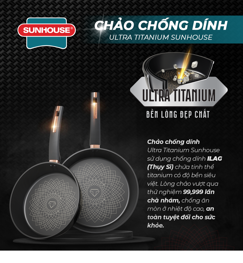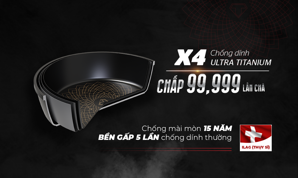 - Chống dính Ultra Titanium (ILAG Thụy Sĩ): độ bền 15 năm, chấp 99.999 lần chà