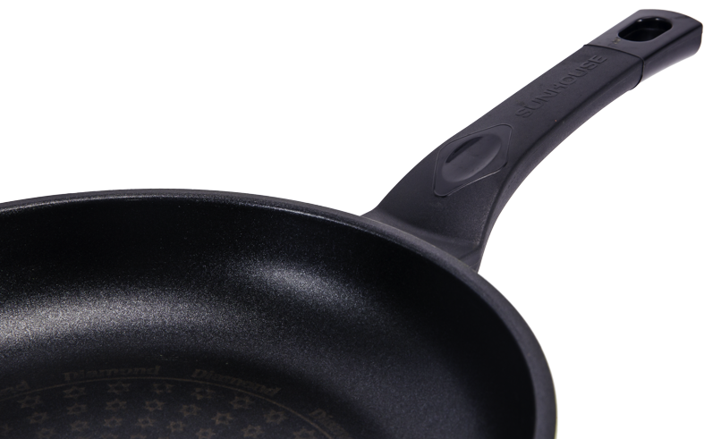 Chảo Diamond SUNHOUSE được phủ lớp chống dính tinh thể kim cương bền bỉ, an toàn, tăng độ chống trầy xước gấp 5 lần chảo thường. Chảo được thiết kế với màu sắc trẻ trung, thích hợp với không gian căn bếp hiện đại.