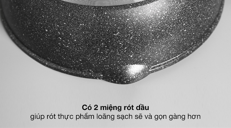 Bề mặt lòng chảo là lớp chống dính vân đá đẹp mắt phủ sơn Whitford có thể chịu mức nhiệt tối đa 315 độ C