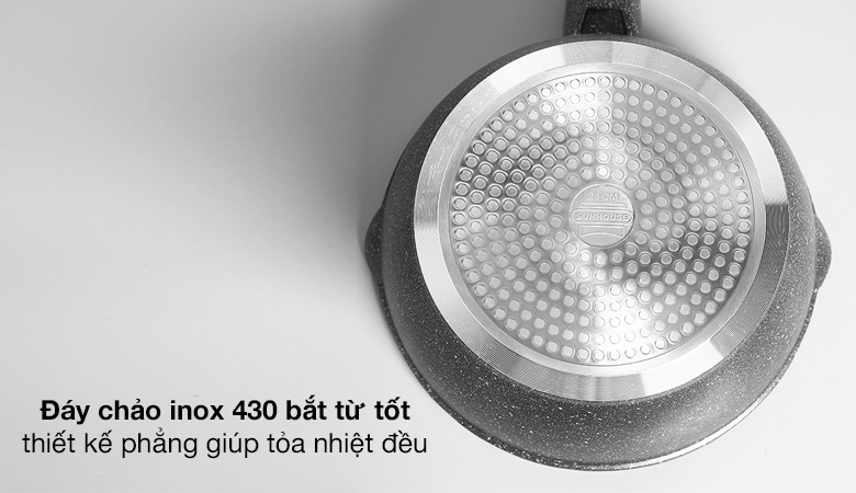 Đáy chảo có lớp inox 430 giúp chảo có thể bắt từ tốt