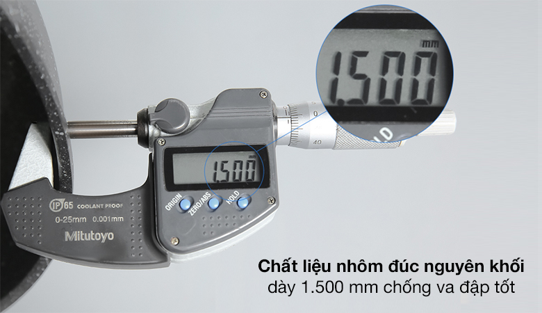 Chảo được làm từ nhôm đúc nguyên khối siêu bền, độ dày 1.500 mm có khả năng chống va đập cực tốt
