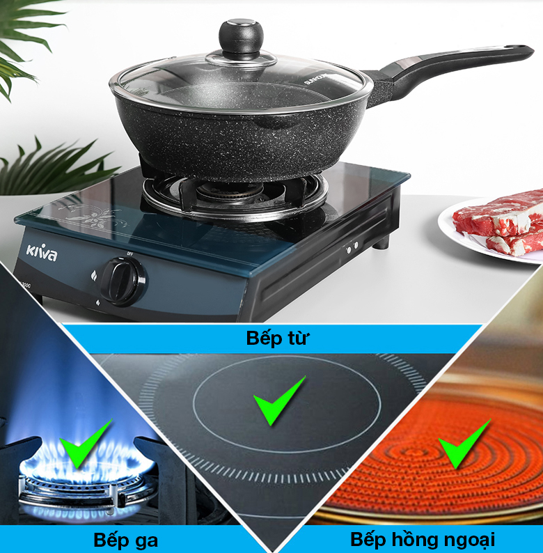 Chảo dùng tốt trên bếp ga, bếp hồng ngoại, bếp từ