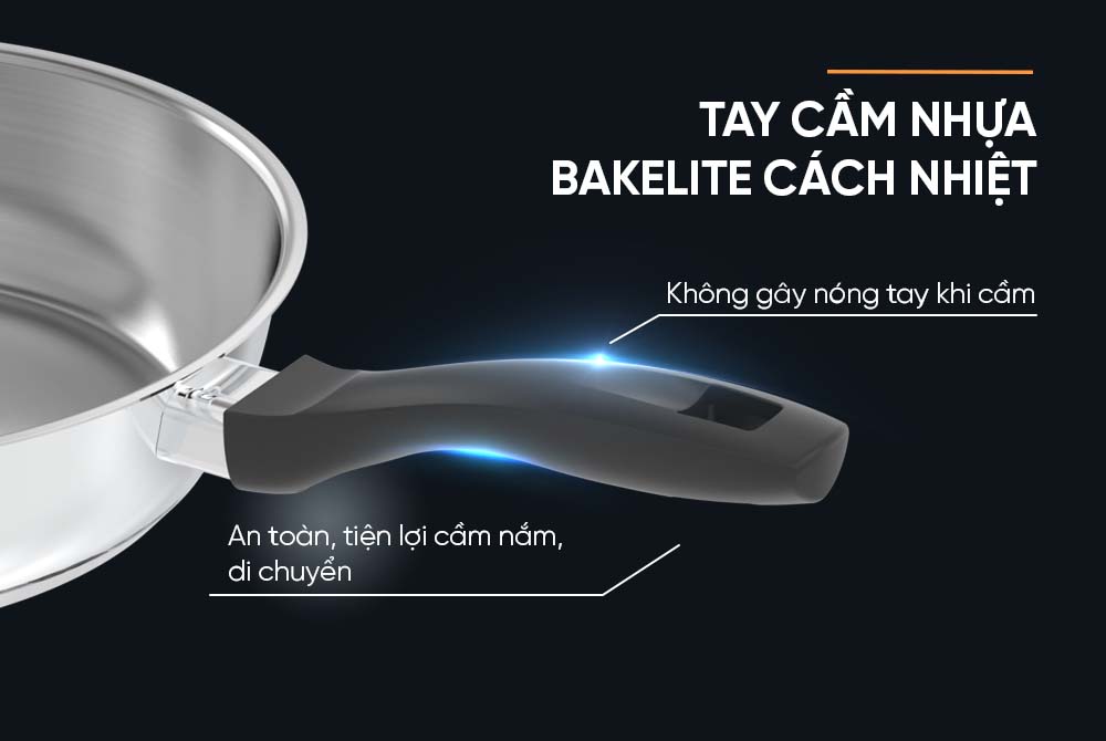 - Tay cầm nhựa Bakelite chống bỏng khi nấu nướng