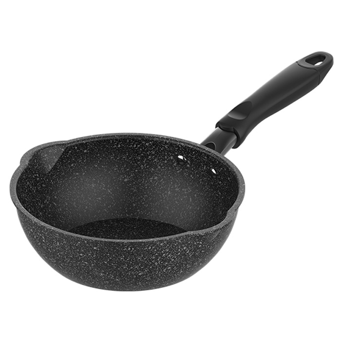 Chảo sâu 7cm, thích hợp để chiên rán ngập dầu hoặc nấu cháo, súp, bột. Thiết kế thêm miệng rót cân đối ở 2 bên giúp cho việc rót các thực phẩm loãng hoặc dầu thừa được sạch sẽ và dễ dàng hơn.