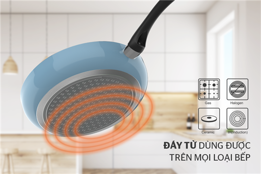 Chảo được cấu tạo đáy từ nên sử dụng được trên mọi loại bếp: bếp từ, bếp gas, bếp hồng ngoại.