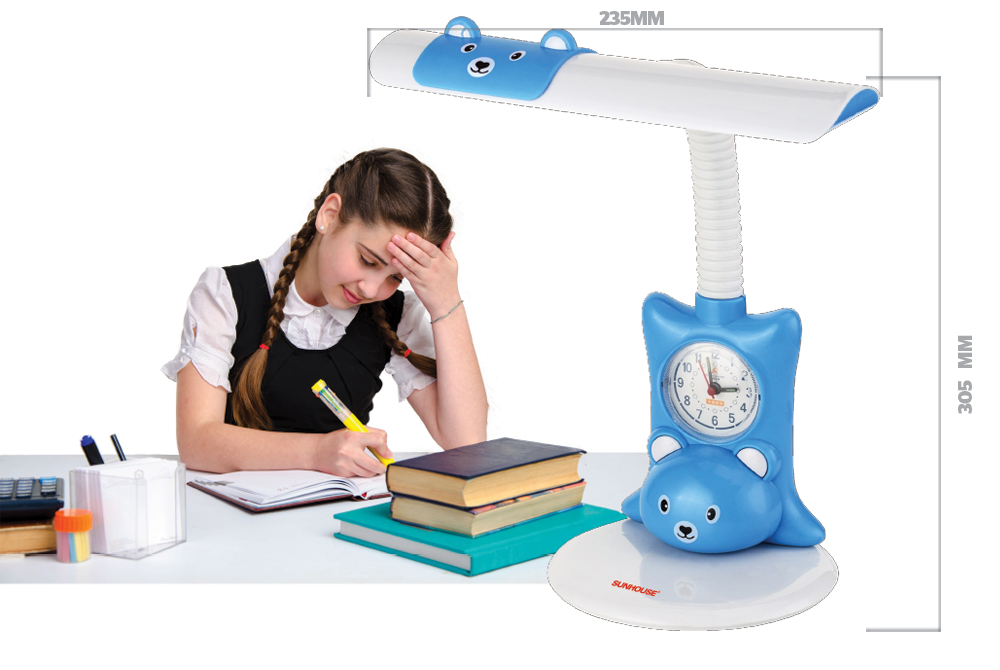 Đèn bàn SH-SL-10LEDB thiết kế theo hình sóc nhỏ ngộ nghĩnh, mang đến cảm giác tươi tắn, mới lạ và đặc biệt rất được các bé yêu thích. Ngoài ra, đèn còn được trang bị một đồng hồ nhỏ ngay trên thân đèn để giúp bé theo dõi được thời gian làm bài cũng như cân đối được việc học của mình.