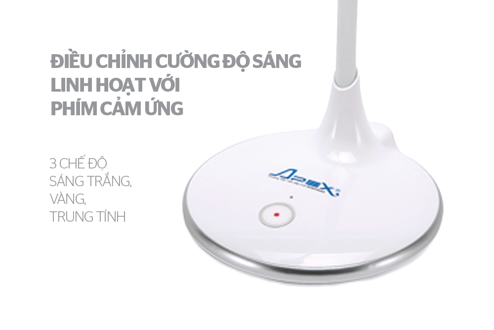 Thay vì công tắc bật/tắt hay núm xoay thông thường, người dùng đèn bàn APE-01LED có thể điều chỉnh độ sáng cũng như độ trắng của ánh sáng đèn thông qua một nút cảm ứng trên thân đế. Đèn cho ra ánh sáng trắng/sáng ấm để phù hợp với từng nhu cầu.