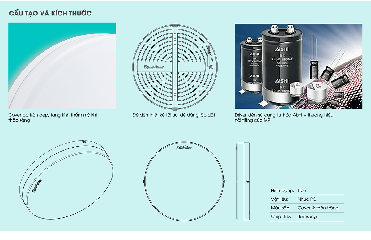 1. Đèn LED Ốp trần Rạng Đông Tiết kiệm đến 90 % điện năng
