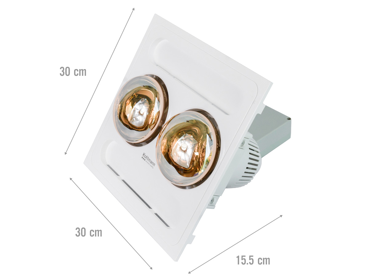 Đèn sưởi nhà tắm Kottmann thiết kế với kiểu dáng hình vuông, kích thước 30cm x 30cm giúp bạn dễ lắp âm trần thạch cao, trần nhôm, trần nhựa cho phòng tắm của gia đình.