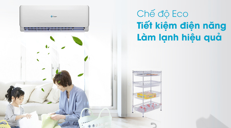 Máy lạnh 2 chiều Casper được tích hợp chế độ Eco giúp tiết kiệm điện năng tối ưu, ngoài tiết kiệm điện chế độ này còn giúp quá trình làm lạnh nhanh hơn, vận hành êm ái hơn.