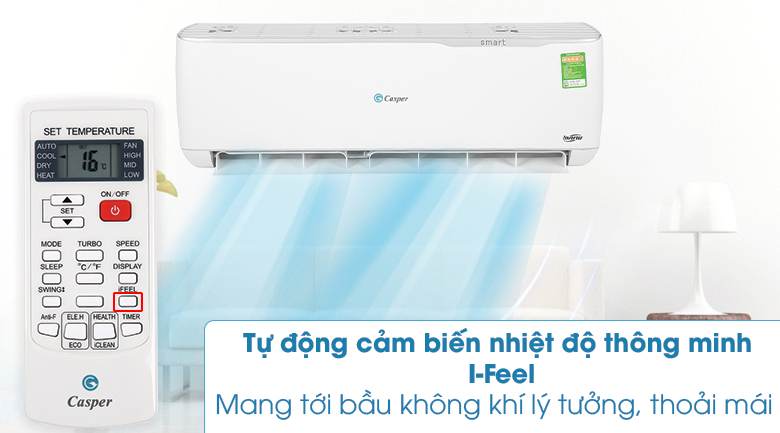 Máy lạnh Casper Inverter 1.5 HP GC-12TL32 với nhiều tính năng đặc biệt vượt trội như: Tự động cảm biến nhiệt độ thông minh I-Feel, Tự động làm sạch I-Clean, Thiết kế thông minh Easy Care,... cùng sản xuất chính hãng tại Thái Lan là một lựa chọn thích hợp cho mọi người với những căn phòng có diện tích nhỏ.