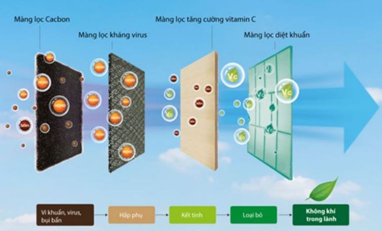 Ưu điểm nổi bật của điều hòa giá rẻ Casper 2021 thế hệ mới đó là sở hữu hệ thống lọc khí 4 màng lọc: Bao gồm màng lọc Cacbon, màng lọc kháng virus, màng lọc tăng cường Vitamin C, màng lọc diệt khuẩn, giúp bắt giữ và loại bỏ bụi bẩn, vi khuẩn, các tác nhân gây hại khác, mang đến bầu không khí trong lành, đảm bảo an toàn sức khỏe cho cả gia đình bạn đặc biệt là đối với người già và trẻ em vì họ có sức đề kháng kém dễ nhiễm bệnh