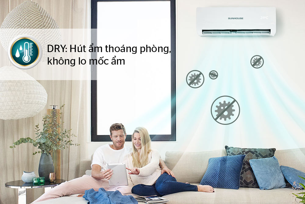 - DRY: Hút ẩm khử nồm, ngăn cản nấm mốc sinh sôi trong phòng