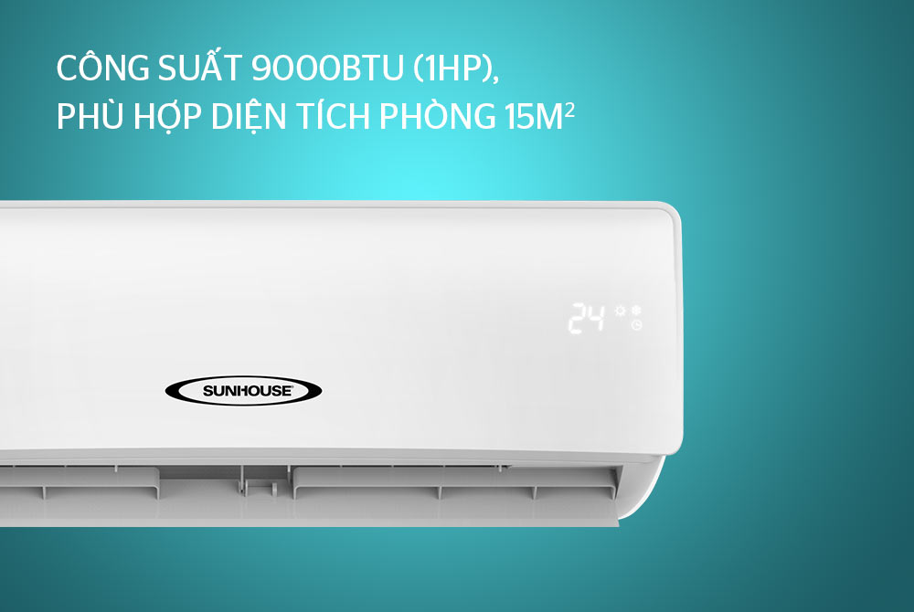 - Công suất 9000BTU (1HP), phù hợp với diện tích phòng 15m2
