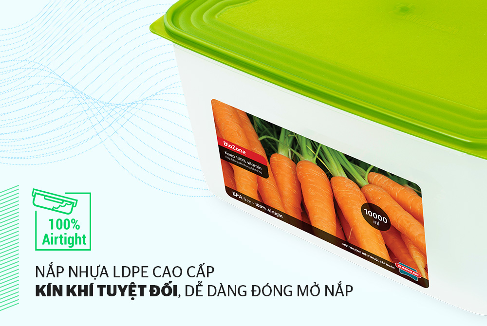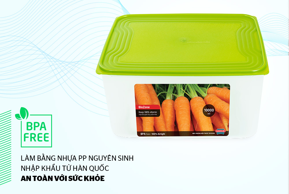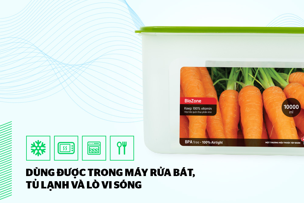 Trong đó, hộp bảo quản thực phẩm khô BioZone 10000ml là dòng hộp nhựa an toàn phân khúc cao cấp được làm từ nguyên liệu nhựa PP nguyên sinh, an toàn với sức khỏe, đáp ứng nhu cầu bảo quản thực phẩm đa dạng tại gia đình.