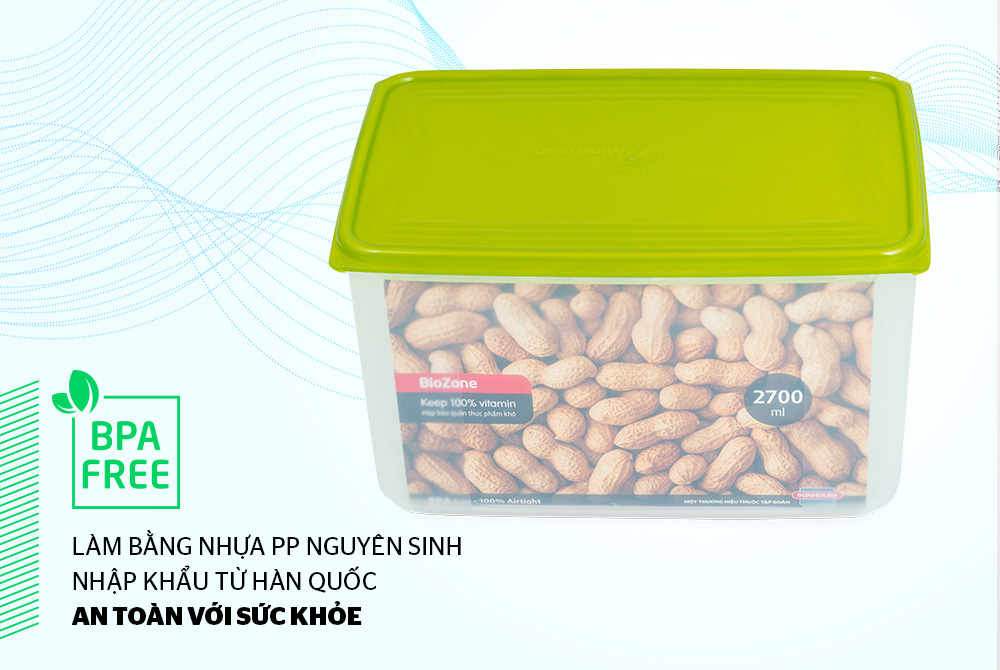 Trong đó, hộp bảo quản thực phẩm khô BioZone 2700ml là dòng hộp nhựa an toàn phân khúc cao cấp được làm từ nguyên liệu nhựa PP nguyên sinh, an toàn với sức khỏe, đáp ứng nhu cầu bảo quản thực phẩm đa dạng tại gia đình.