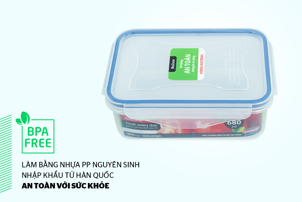 Trong đó, hộp bảo quản thực phẩm ngăn mát BioZone 680ml là dòng hộp nhựa an toàn phân khúc cao cấp được làm từ nguyên liệu nhựa PP nguyên sinh, an toàn với sức khỏe, đáp ứng nhu cầu bảo quản thực phẩm đa dạng tại gia đình.