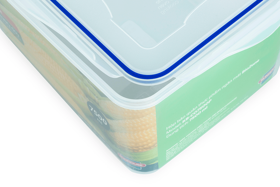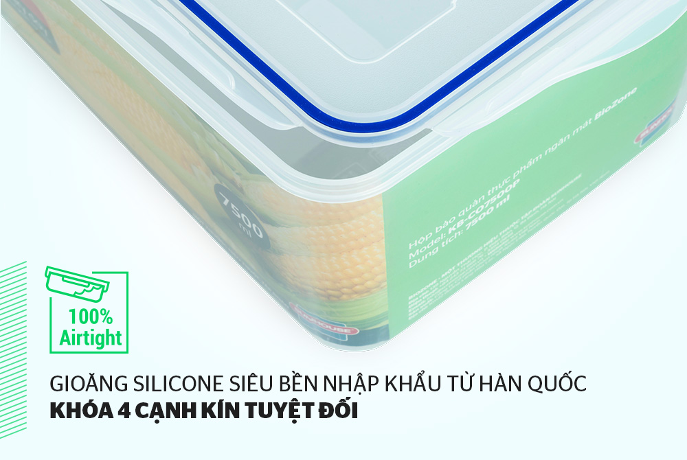Gioăng silicon bọc quanh nắp hộp, ngăn không cho không khí tràn vào hoặc thoát ra, hạn chế quá trình oxy hóa xảy ra, thực phẩm tươi lâu hơn.