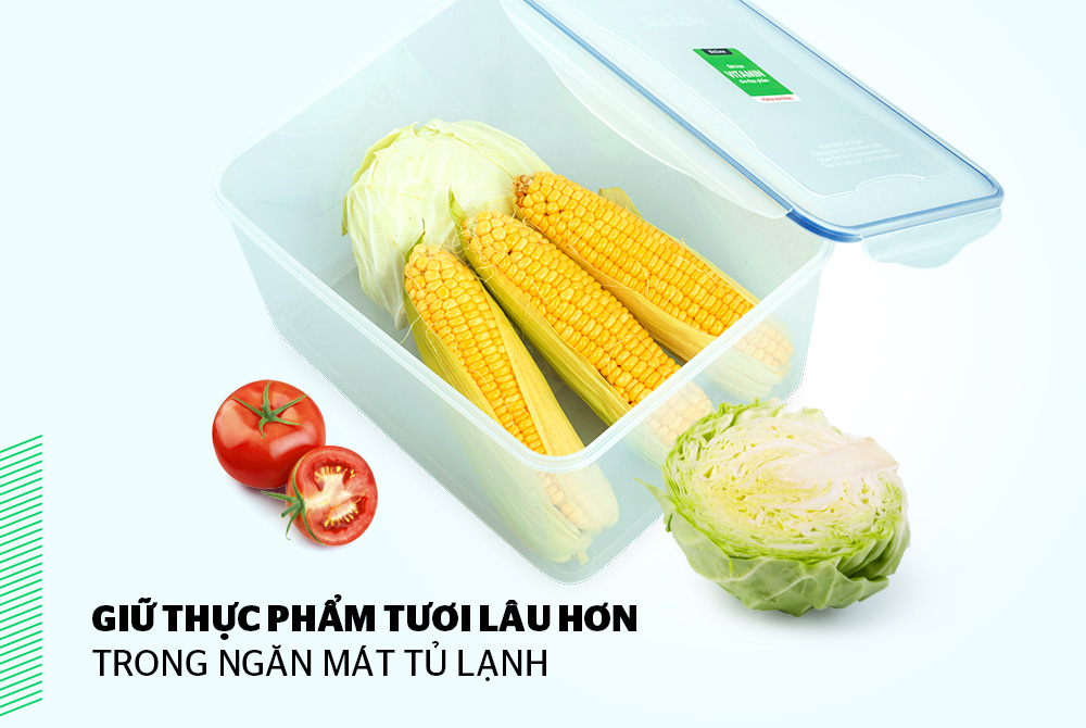 Hộp thực phẩm có ưu điểm kín khí tuyệt đối nên ngăn chặn được quá trình oxy hóa diễn ra, giúp thực phẩm tươi lâu hơn, giữ được độ ẩm cần thiết.