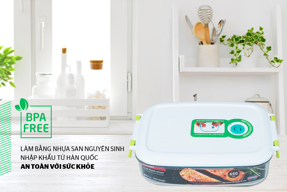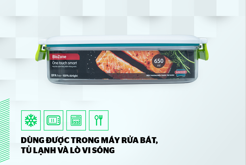 Trong đó, hộp bảo quản thực phẩm thông minh BioZone 650ml là dòng hộp nhựa an toàn phân khúc cao cấp được làm từ nguyên liệu nhựa nguyên sinh, an toàn với sức khỏe, đáp ứng nhu cầu bảo quản thực phẩm đa dạng tại gia đình.