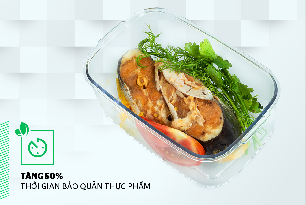 Nhờ thiết kế van chân không thông minh và độ kín hơi 100%, hộp BioZone giúp bạn giữ nguyên độ tươi ngon và tăng 50% thời gian bảo quản thực phẩm.