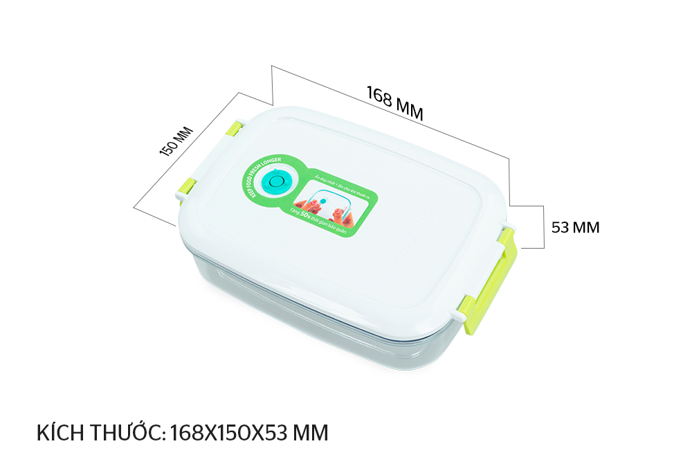 Van silicone trên nắp hộp có tác dụng xả bớt không khí trong hộp chỉ với một lần ấn nhẹ, giúp giảm độ ẩm và tốc độ oxi hóa, ngăn ngừa thất thoát vitamin, giữ nguyên độ tươi ngon của thực phẩm.