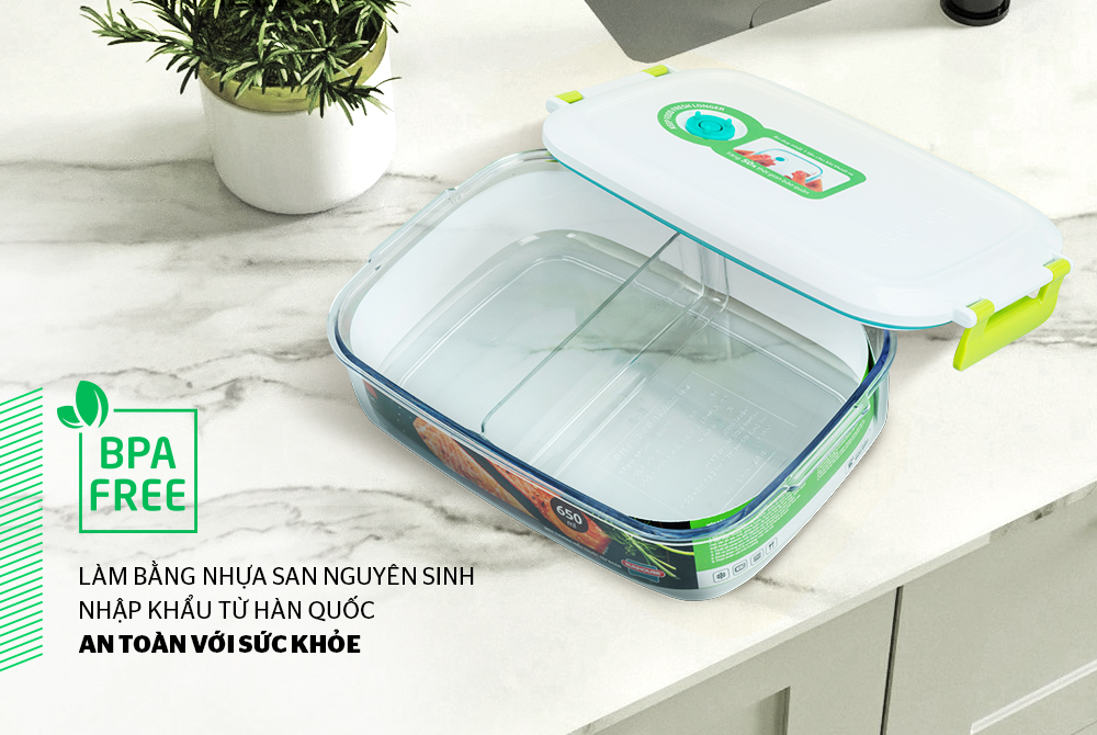 Với thiết kế hộp chữ nhật nhỏ gọn, dung tích 650ml, hộp có khả năng bảo quản được một lượng nhỏ thực phẩm, giúp bạn sắp xếp thực phẩm ngăn nắp trong tủ lạnh để tiết kiệm diện tích.