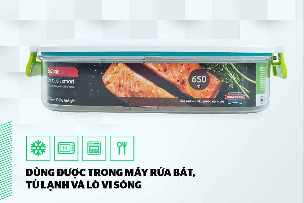 Trong đó, hộp bảo quản thực phẩm thông minh BioZone 650ml là dòng hộp nhựa an toàn phân khúc cao cấp được làm từ nguyên liệu nhựa nguyên sinh, an toàn với sức khỏe, đáp ứng nhu cầu bảo quản thực phẩm đa dạng tại gia đình.