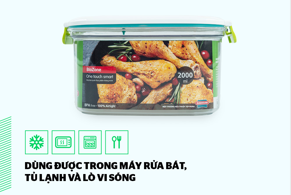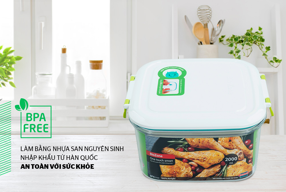 Trong đó, hộp bảo quản thực phẩm thông minh BioZone 2000ml là dòng hộp nhựa an toàn phân khúc cao cấp được làm từ nguyên liệu nhựa nguyên sinh, an toàn với sức khỏe, đáp ứng nhu cầu bảo quản thực phẩm đa dạng tại gia đình.