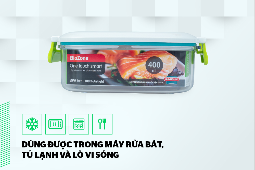 Trong đó, hộp bảo quản thực phẩm thông minh BioZone 400ml là dòng hộp nhựa an toàn phân khúc cao cấp được làm từ nguyên liệu nhựa nguyên sinh, an toàn với sức khỏe, đáp ứng nhu cầu bảo quản thực phẩm đa dạng tại gia đình.