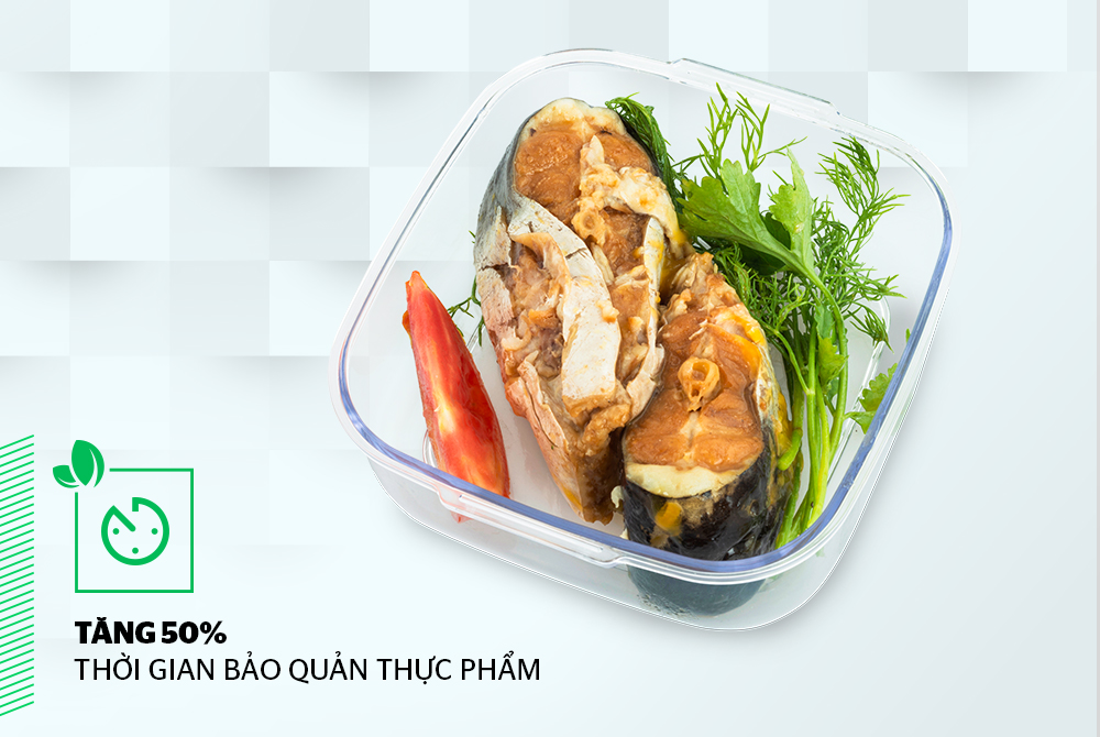 Nhờ thiết kế van chân không thông minh và độ kín hơi 100%, hộp BioZone giúp bạn giữ nguyên độ tươi ngon và tăng 50% thời gian bảo quản thực phẩm.