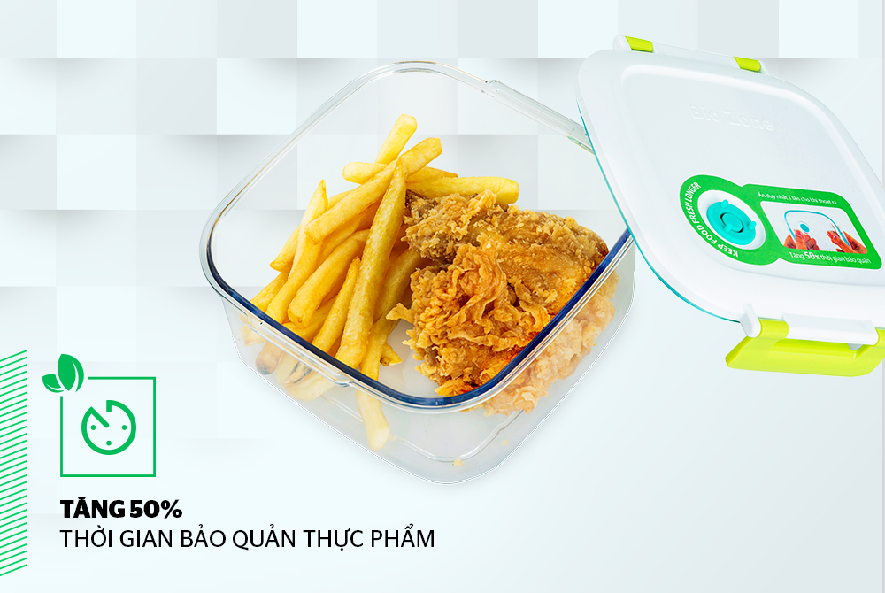 Nhờ thiết kế van chân không thông minh và độ kín hơi 100%, hộp BioZone giúp bạn giữ nguyên độ tươi ngon và tăng 50% thời gian bảo quản thực phẩm.