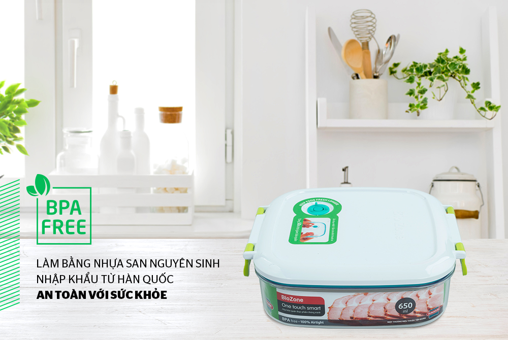 Trong đó, hộp bảo quản thực phẩm thông minh BioZone 650ml là dòng hộp nhựa an toàn phân khúc cao cấp được làm từ nguyên liệu nhựa nguyên sinh, an toàn với sức khỏe, đáp ứng nhu cầu bảo quản thực phẩm đa dạng tại gia đình.