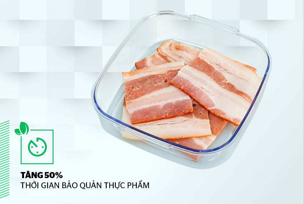 Nhờ thiết kế van chân không thông minh và độ kín hơi 100%, hộp BioZone giúp bạn giữ nguyên độ tươi ngon và tăng 50% thời gian bảo quản thực phẩm.
