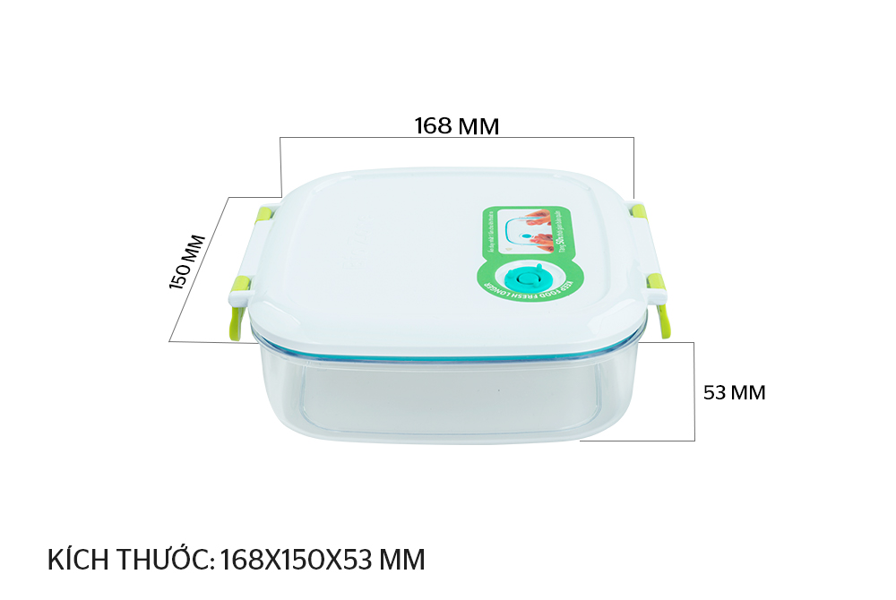 Van silicone trên nắp hộp có tác dụng xả bớt không khí trong hộp chỉ với một lần ấn nhẹ, giúp giảm độ ẩm và tốc độ oxi hóa, ngăn ngừa thất thoát vitamin, giữ nguyên độ tươi ngon của thực phẩm.