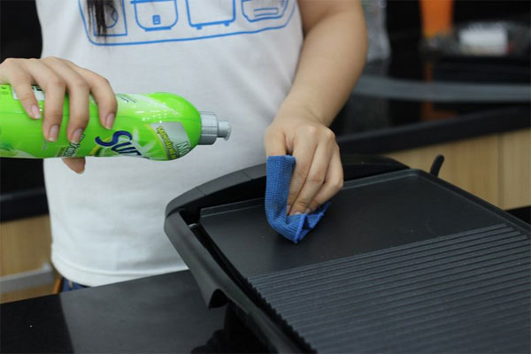 Bước 7: Dùng chất tẩy rửa để làm sạch bề mặt của bếp nướng, sau đó dùng khăn ướt lau sạch lại bếp.