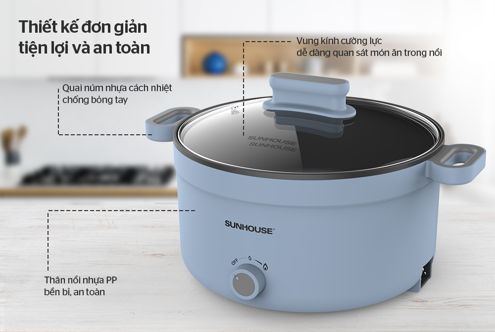 Ăn lẩu tại gia ngày càng trở nên quen thuộc với các gia đình Việt. Không những đổi vị bữa cơm gia đình, quây quần bên nồi lẩu còn là khoảng thời gian vàng để các thành viên thêm gắn kết. Thấu hiểu được nhu cầu đó, SUNHOUSE cho ra đời Nồi lẩu điện 3.5L SUNHOUSE SHD4528 với thiết kế trang nhã và công suất nấu mạnh mẽ, chế biến được nhiều loại thức ăn khác nhau, sử dụng đơn giản, tiện dụng hơn cho công việc nội trợ.