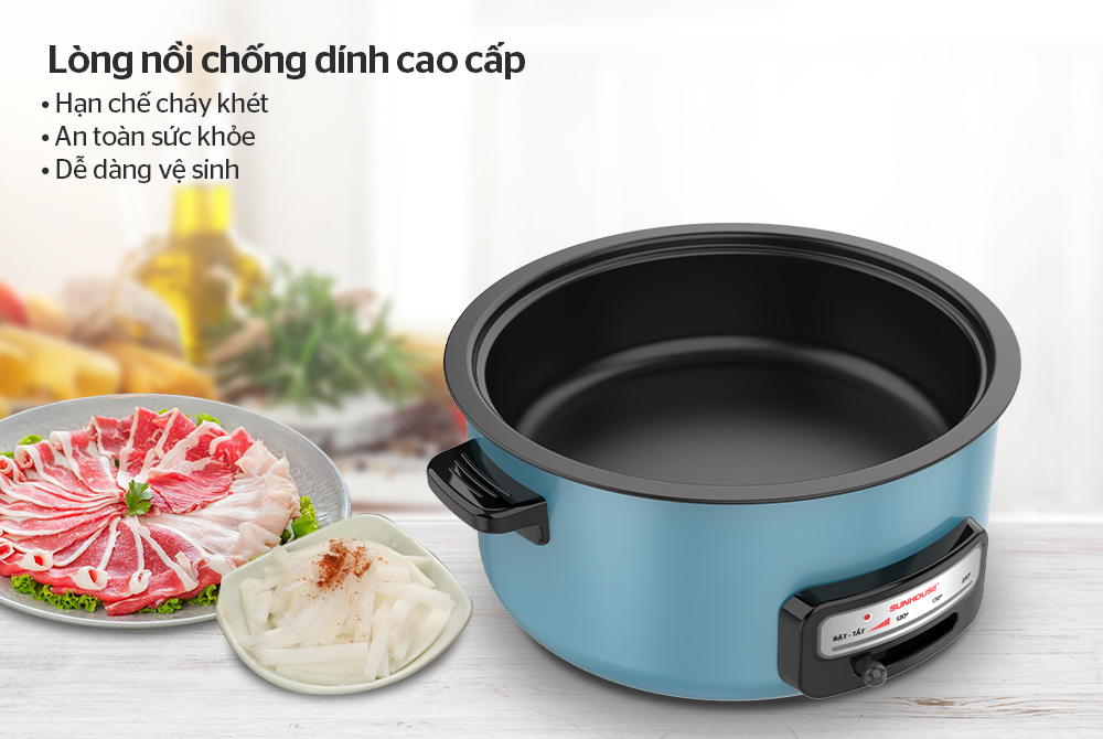 Ăn lẩu tại gia ngày càng trở nên quen thuộc với các gia đình Việt. Không những đổi vị bữa cơm gia đình, quây quần bên nồi lẩu còn là khoảng thời gian vàng để các thành viên thêm gắn kết. Thấu hiểu được nhu cầu đó, SUNHOUSE cho ra đời Nồi lẩu điện SUNHOUSE SHD4527 với thiết kế trang nhã và công suất nấu mạnh mẽ, chế biến được nhiều loại thức ăn khác nhau, sử dụng đơn giản, tiện dụng hơn cho công việc nội trợ.