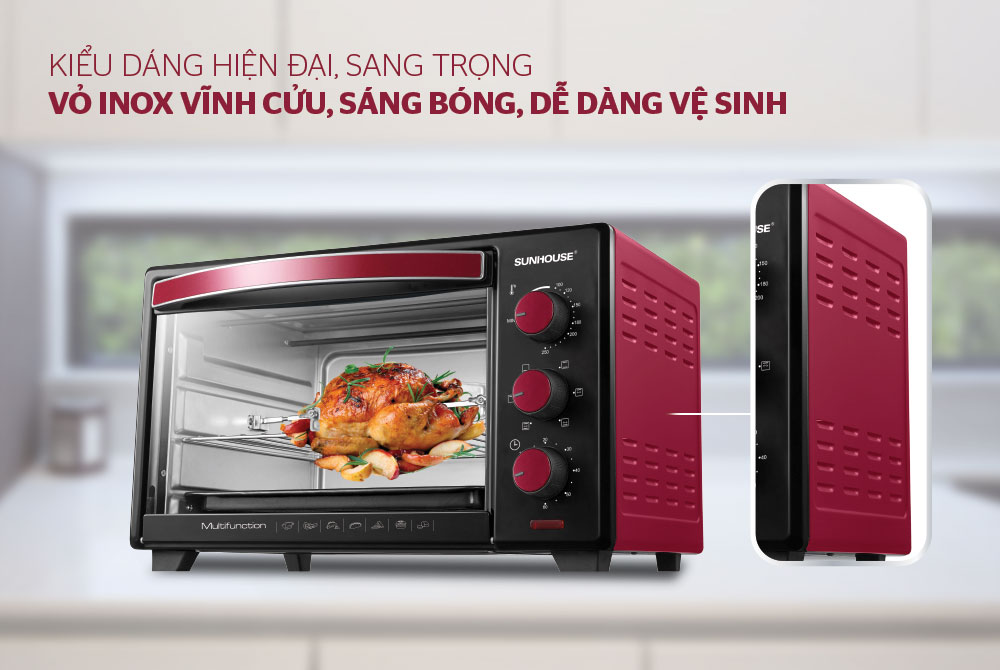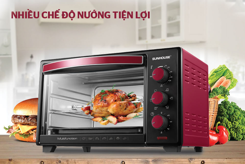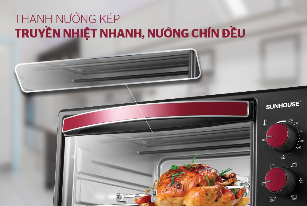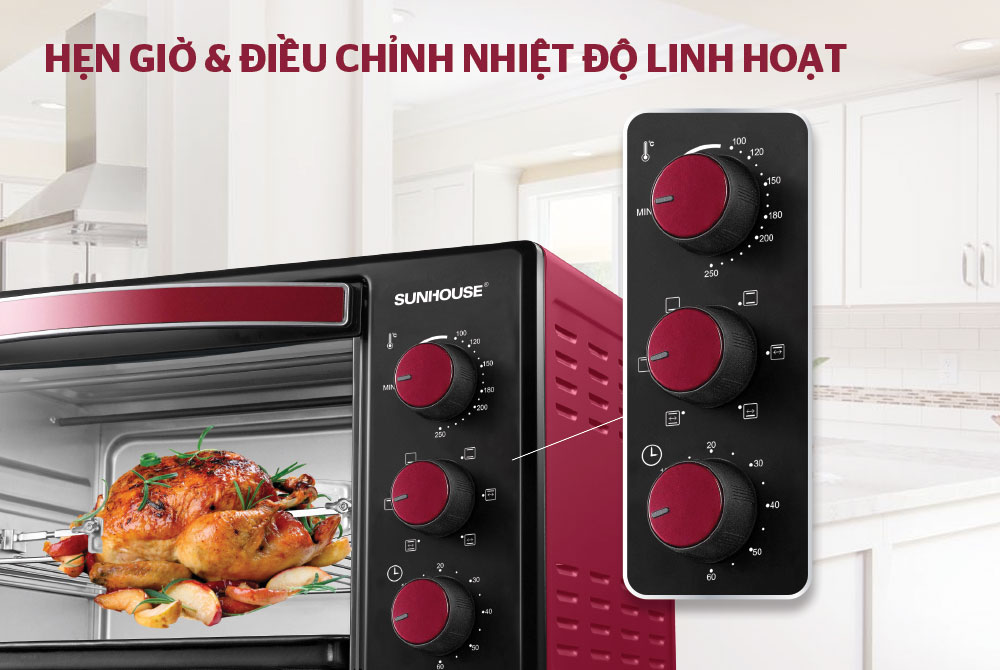 Lò nướng điện SUNHOUSE SHD4222 có nút điều khiển dạng nút xoay, dễ dàng sử dụng, bạn có thể tùy chỉnh thời gian và nhiệt độ cho phù hợp với từng món ăn khác nhau. Sản phẩm còn có cửa bằng kính trong suốt, siêu bền tránh thất thoát nhiệt và bạn dễ dàng quan sát quá trình nướng chín thực phẩm bên trong.