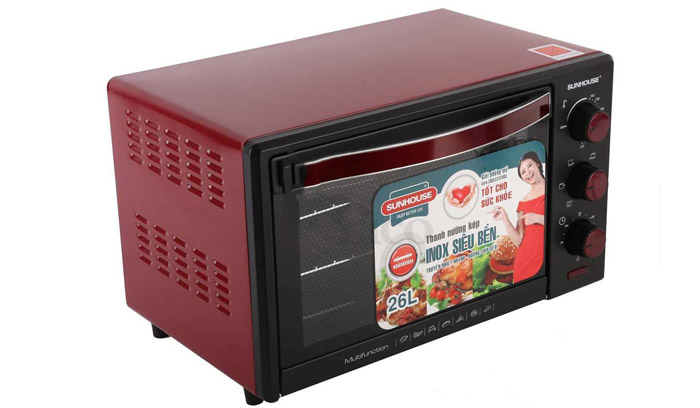 Lò nướng SUNHOUSE SHD4226R với dung tích 26L là lựa chọn tuyệt vời đối với những gia đình có 3 – 5 thành viên, có thể sử dụng cho tất cả các loại thịt cá và rau củ. Các chức năng của lò được điều khiển dễ dàng thông qua núm vặn, rất phù hợp với những người mới bắt đầu sử dụng lò nướng hiện đại.