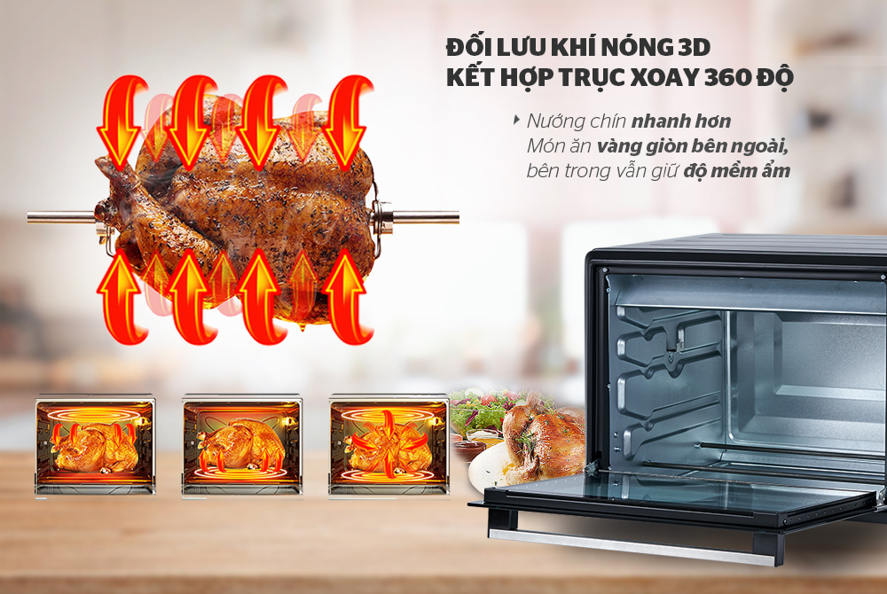 - Đối lưu khí nóng giúp thức ăn chín nhanh và giữ nguyên hương vị