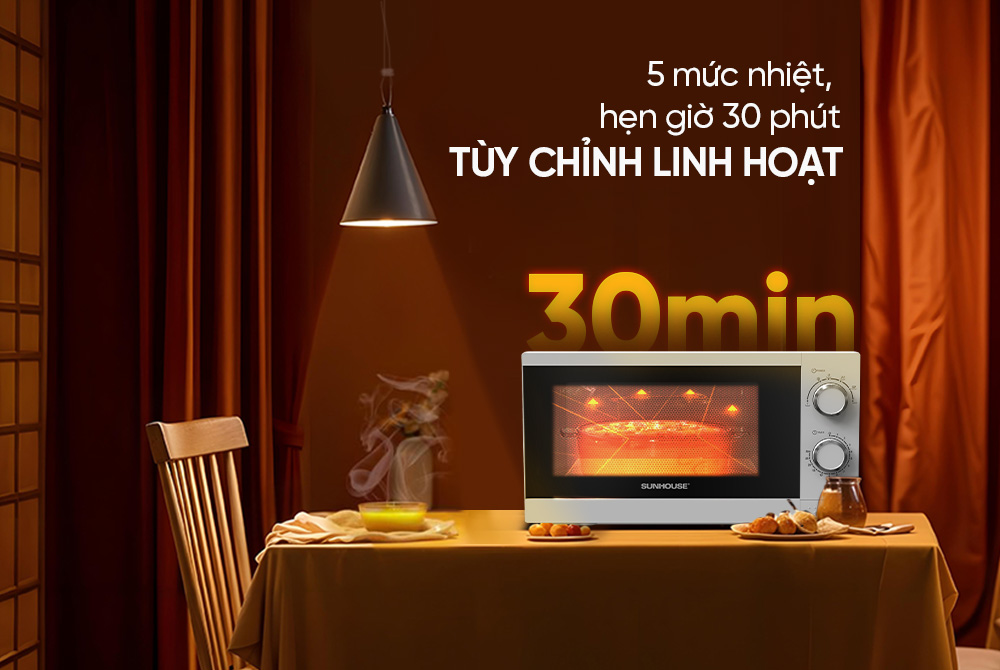 Sản phẩm được trang bị 5 mức nhiệt khác nhau và chế độ hẹn giờ 30 phút, cho phép bạn có thể tùy chỉnh linh hoạt tùy theo nhu cầu nấu ăn. Chức năng này giúp bạn kiểm soát tốt hơn quá trình nấu ăn, đảm bảo món ăn được chế biến đúng cách và không bị quá nhiệt.