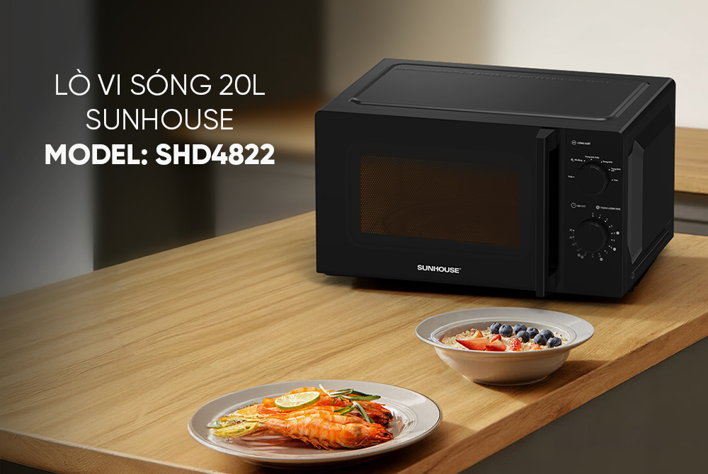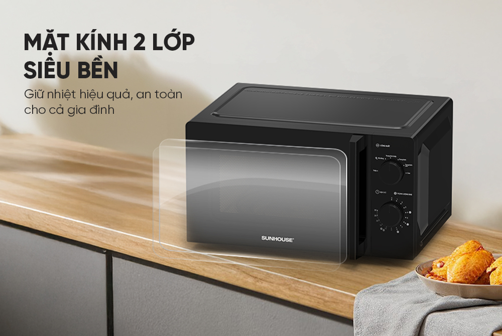 Lò vi sóng 20L Sunhouse SHD4822 sở hữu kiểu dáng tối giản nhưng tinh tế, phù hợp với mọi phong cách nội thất bếp. Cửa kính 2 lớp siêu bền giúp tăng độ an toàn và giữ nhiệt tốt, vừa đảm bảo hiệu quả nấu chín nhanh vừa tăng tuổi thọ sản phẩm.